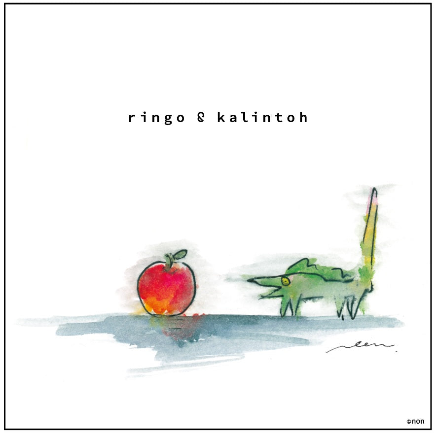 「三毛&カリントウ」グッズ第1弾は、リンゴが好き、というカリントウにちなみ「ringo & kalintoh」と名付けら名付けら名付けられました。のんが初めて描いた「カリントウ」の水彩画をグッズ化。